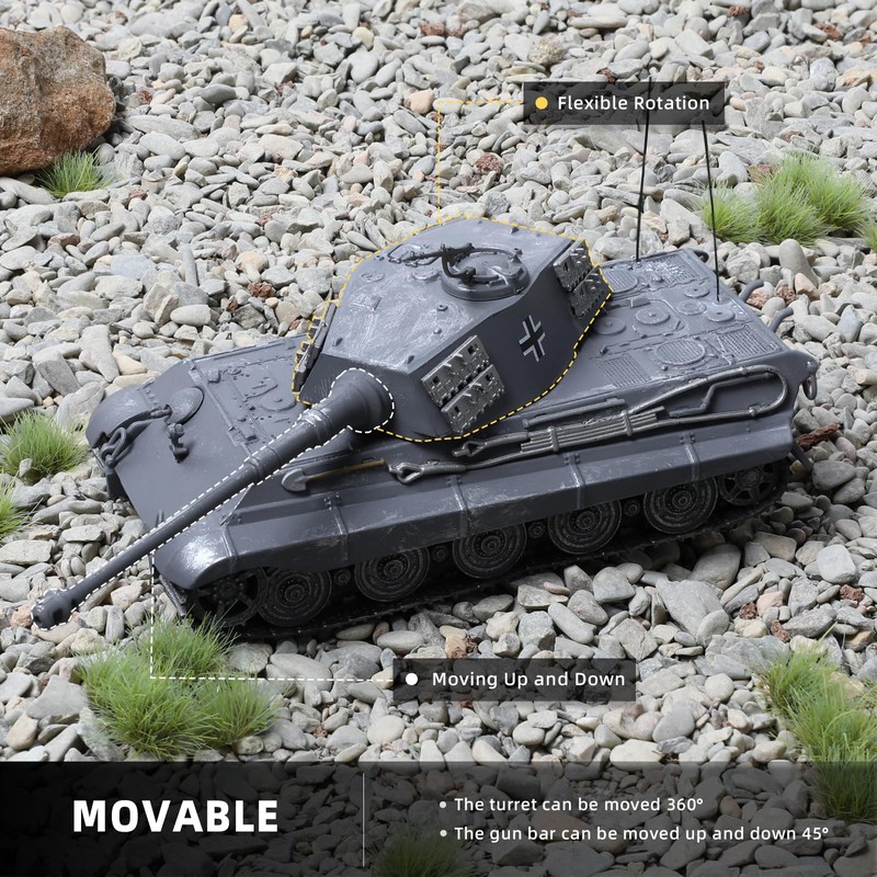 - 【Materials and Highlights】– 1/72 World War II military tank model is carefully crafted with high-quality materials. The body of the tank is made of solid die-cast alloy metal 1/72 tank model, giving the tank model realism and durability. The top console and turret are made of high-quality plastic tank model. This design not only enhances the appearance authenticity of the model, but also ensures the excellent durability and collection value of the 1/72 scale World War II tank model.