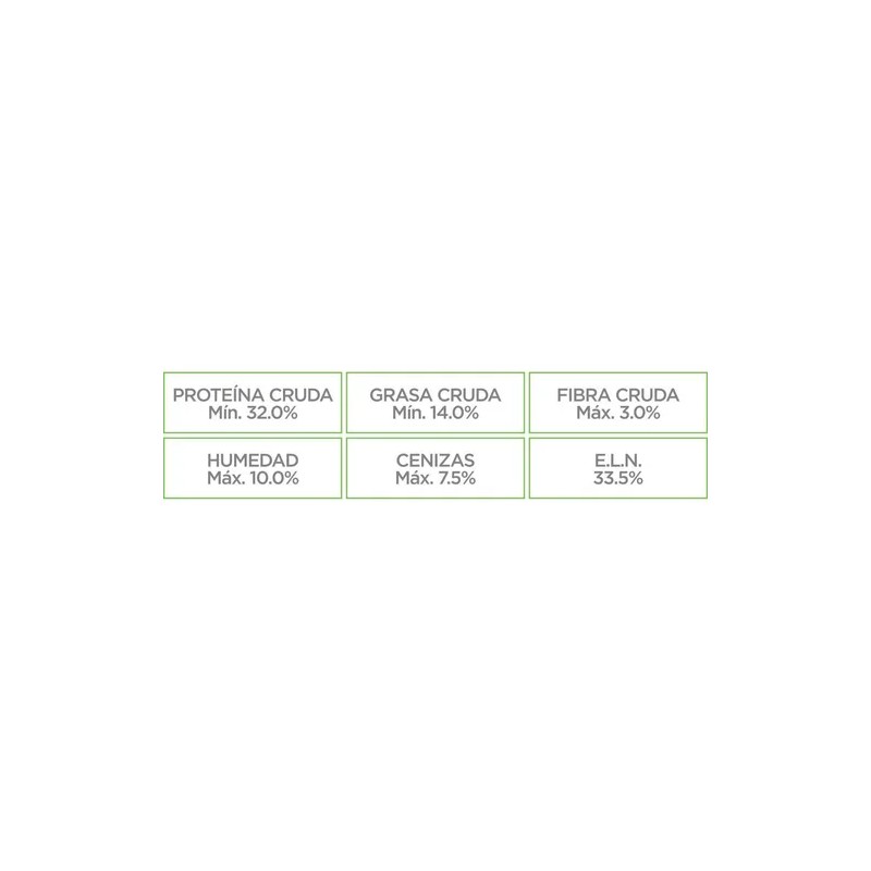 Harina de carne de pollo, arroz cervecero, grasa de pollo, maíz, pulpa de remolacha, harina de pescado, aceite de pescado, sabor natural de pollo, extracto de raíz de achicoria, fructooligosacáridos, cloruro de sodio, cloruro de potasio, cloruro de colina, betaglucanos y mananooligosacaridos (derivado de la pared celular de saccharomyces cerevisiae activa 1×10¹⁰ UFC/g), taurina, acetato de retinol (fuente de vitamina A), colecalciferol (fuente de vitamina D), acetato de DL-α-tocoferol (fuente de vitamina E), menadiona nicotinamida bisulfato (fuente de vitamina K), ácido ascórbico (fuente de vitamina C), mononitrato de tiamina (fuente de vitamina B1), riboflavina (fuente de vitamina B2), ácido nicotínico (fuente de vitamina B3), clorhidrato de piridoxina (fuente de vitamina B6), cianocobalamina (fuente de vitamina B12), D-biotina (fuente de vitamina H), D-pantotenato de calcio (fuente de vitamina B5), ácido fólico, oligoelementos (proteinato de zinc, proteinato de manganeso, proteinato de cobre, EDDI, glicinato de hierro, selenito de sodio), extracto de Yucca schidigera, mezcla de tocoferoles y extracto de romero como conservadores. pethouse.mx+6croquetasmx.com+6Canela y Tomaso+6