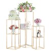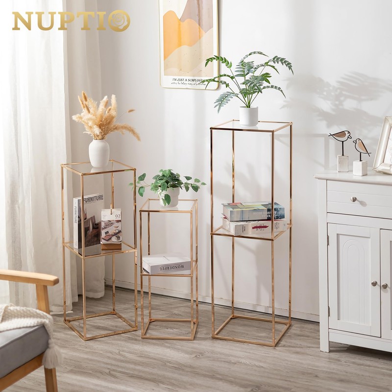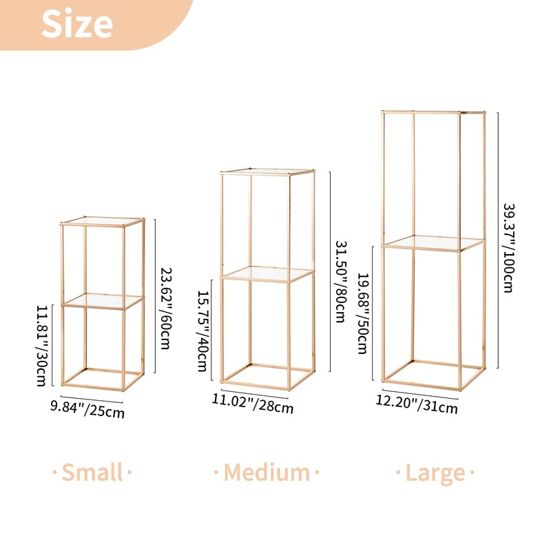 - Elegant and Stable: The upgraded design of the 2-layer panel makes our square gold flower stand more versatile. It can serve as a cake stand, pedestal stand, gold plant stand, gold risers for display, and gold vases for centrepieces. The sturdy column pillar ensures stability, enhancing the overall elegance of your arrangements.