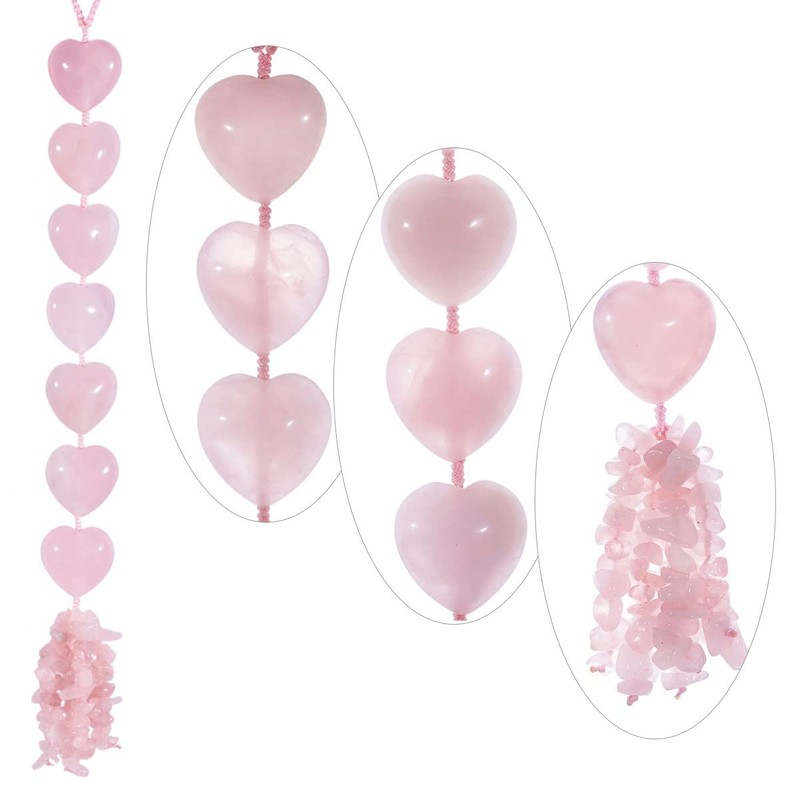 - MANUAL CRYSTAL CRAFT: 7 semi-precision quartz gemstones, hand carved and polished in heart shape, on the bottom there are polished chip stones as tassels, all connected with a nylon rope. Each stone is the creation of the natural mother and therefore may vary slightly in colour, shape and texture from the images shown.