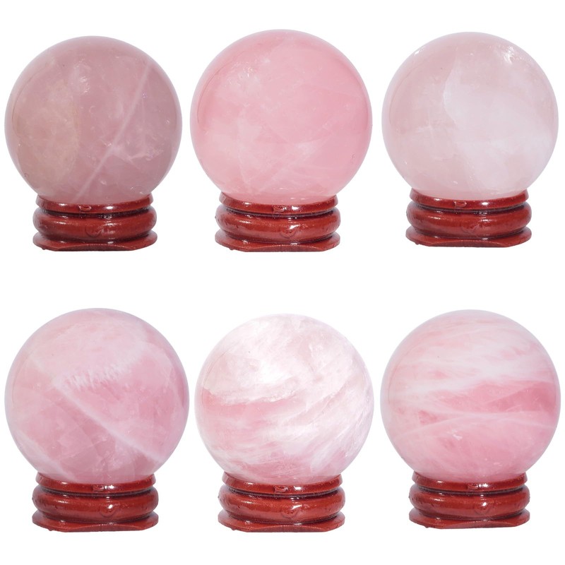 - Size details: rose quartz ball diameter: 40 mm - 45 mm (1.57 - 1.77 inches); wooden stand: 12 mm (0.47 in) high, 30 mm (1.18 in) wide. Packing: 1 x crystal stone ball, 1 x black gift box and 1 x branded gift bag.