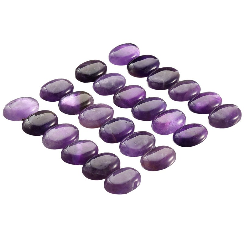 - Quantity: 5; half oval shape; size: 22 x 30 mm; material: amethyst; each weight: approx. 7 g. Box contents: 5 x cabochons, 1 x gift bag