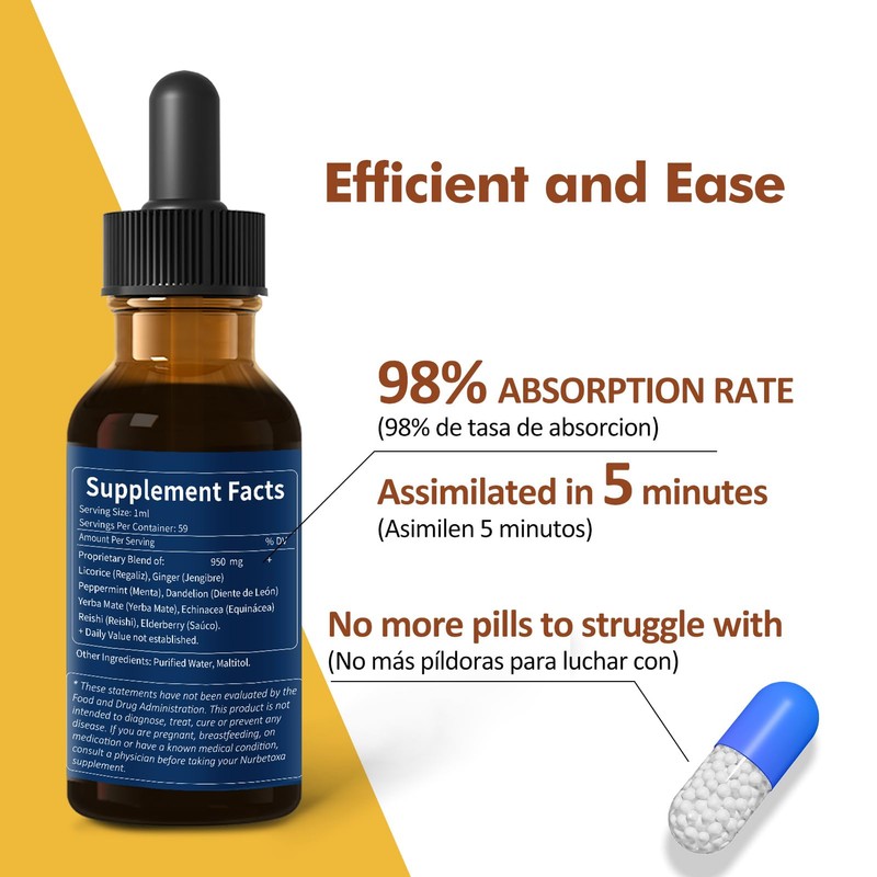 - FÁCIL Y EFECTIVO: Di adiós a las pastillas y cápsulas difíciles de tragar. Prueba nuestro suplemento líquido de Regaliz. Tiene mayor biodisponibilidad. El cuerpo lo absorbe en solo cinco minutos, con una tasa de absorción del 98%. Solo añade 1 ml (equivalente a 30 gotas) a agua o jugo. Tómalo 1 o 2 veces al día según sea necesario.