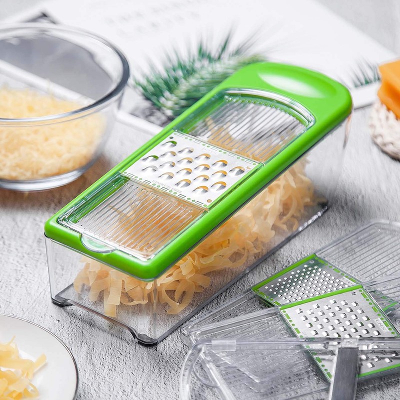 - ✅【High Efficiency】: Practical 4-in-1 multi-purpose design for easy preparation of salads. Whether it is cutting potatoes, carrot grater, tomato slices or zucchini, chocolate, garlic, cheese etc.
