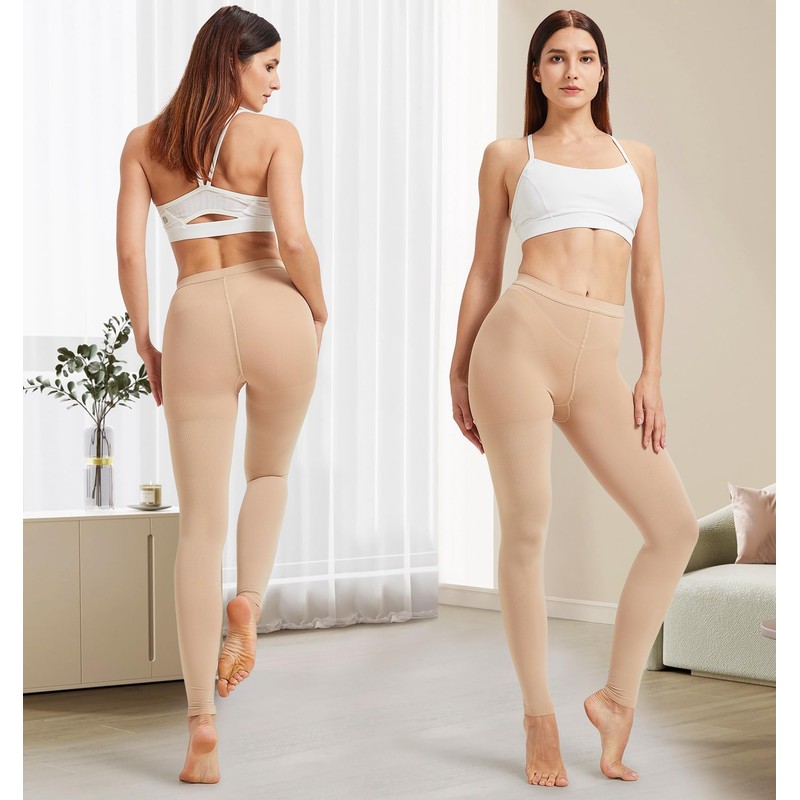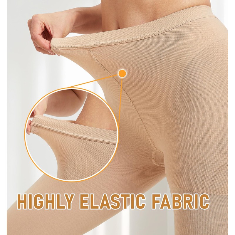 - PERFECT FIT: These medical compression tights have a superior elastic waistband that fit hug your tummy securely and comfortably without causing any slippage, while remaining comfortable. It effectively prevents any unwanted build-up on your legs, sparing you from any additional discomfort in your tummy or legs. Moreover, will not leave unsightly marks on your tummy if you choose the right size. Footless pantyhose are great for walking, sitting, standing, travel & all occasions—casual to formal.