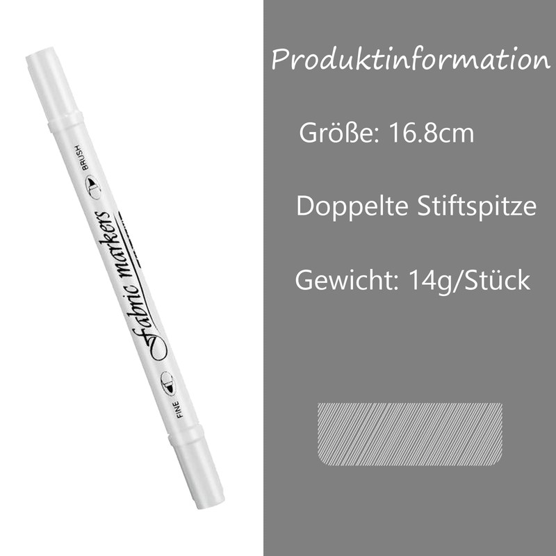 The ink of the fabric pen is waterproof, dries quickly, does not fade and has a rich colour. It is suitable for drawing on fabric and leather. The double tip design is suitable for different painting situations. The pen holder fits comfortably in the hand.