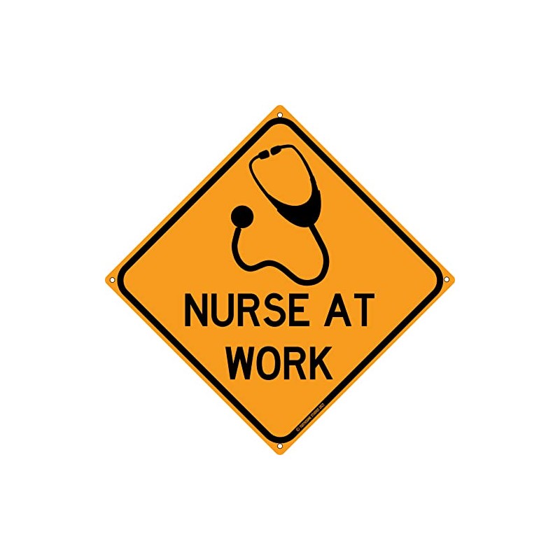 Nurse At Work 12" x 12" Tin Road Sign Medical Office Hospital Gift For Nurse Stethoscope Home Decor