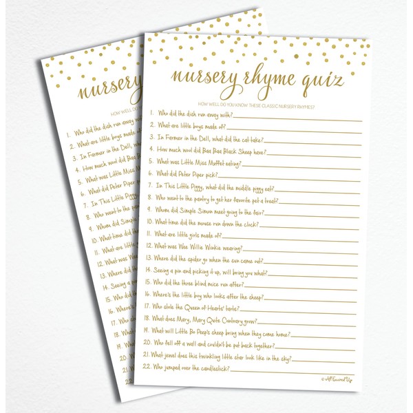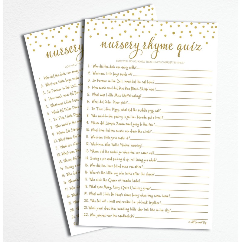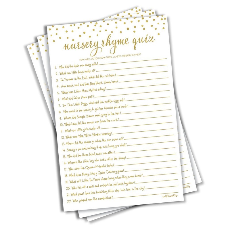 Nursery Rhyme Quiz Game - Baby Shower Games - Gold Confetti (50-sheets)