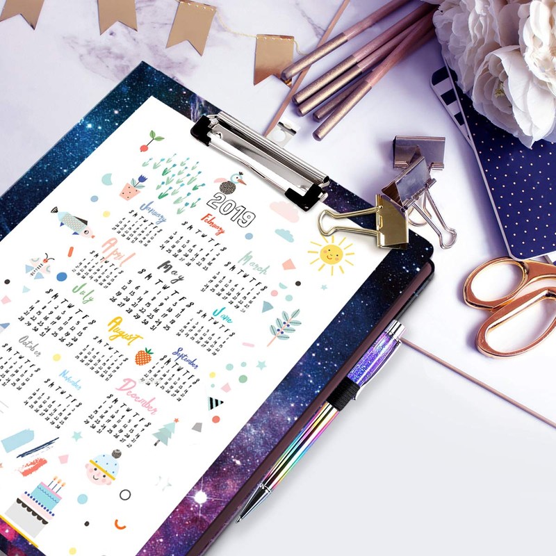 - Clipboard expanded size: 19 x 12.85 inches/325 x 480mm, folded size: 12.85 x 9.3 inches/325 x 235mm, with Low-Profile Metal Clip. Beautiful print, stylish pattern, gloss laminationay, never fade away, cute desk decor accesorry.