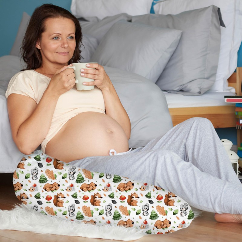 Nursing Pillow with Filling for Small Baby, Positioning Pillow, Baby Side Sleeper Pillow, Pregnancy Pillow for Sleeping, Cotton Incl. Cover Size 170 cm, Pregnancy Pillow, Squirrel