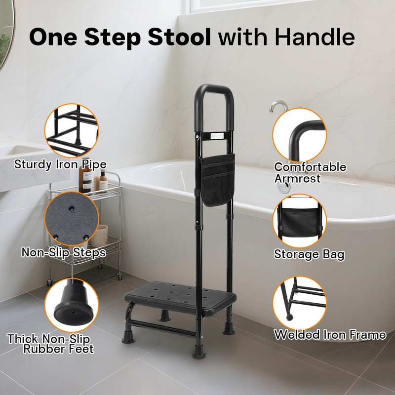 - 【Enhanced Stability & Safety】Engineered with a reinforced steel frame, thickened non-slip single platforms, and rubberized feet, this step stool with handle supports up to 350 lbs, ensuring maximum sturdiness and balance for seniors and adults.