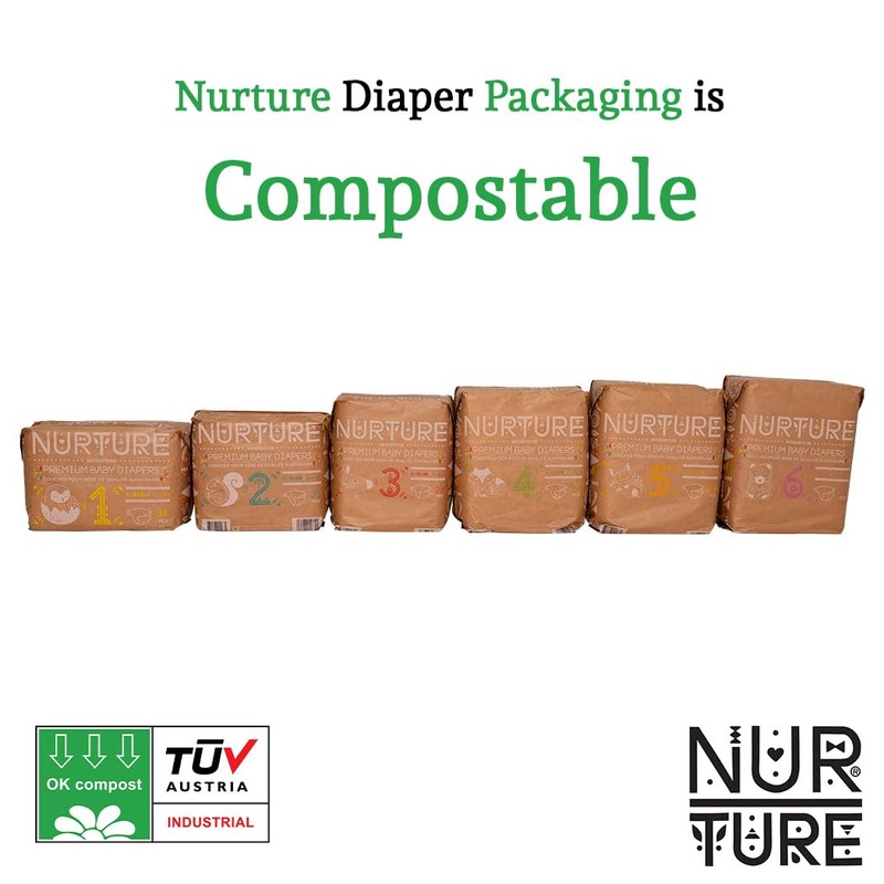 - Easy on the Earth. Nurture diapers are made in a certified 100% wind-powered facility in Denmark