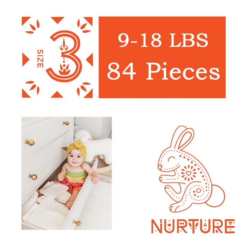 Nurture Diapers by BioBag, Size 3 (9-18 pounds), 84 Premium Quality Baby Diapers, Chemical Free, Ultra Absorbent, Eco Friendly, Hypoallergenic, White