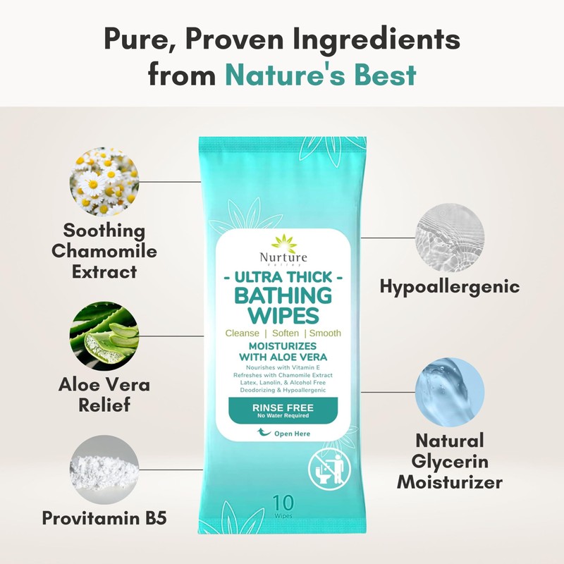 Nurture XL Ultra Thick Body Wipes for Adults w/Aloe | 120 Extra Large Disposable Cloth Wet Cleansing No Rinse Bathing Washcloths, Waterless Shower | Bath Wipe for Women, Men & Elderly