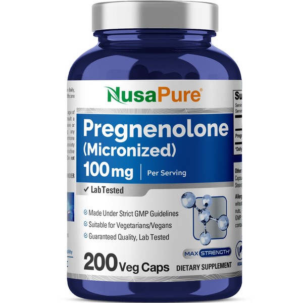 - Pregnenolone (Micronized) 100 mg Per Serving 200 veg Caps Dietary Supplement Vegan, Non-GMO