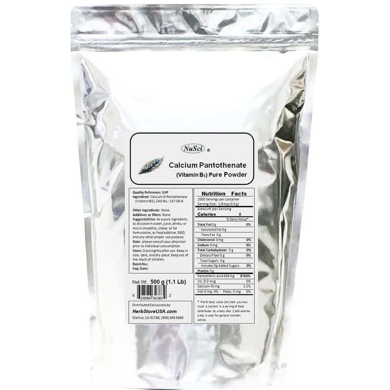 NuSci Calcium D-Pantothenate Vitamin B5 500 Grams (1.1 lb, 17.6 oz) Pure Powder