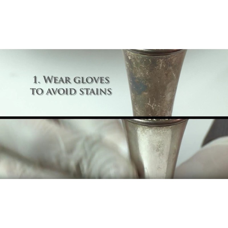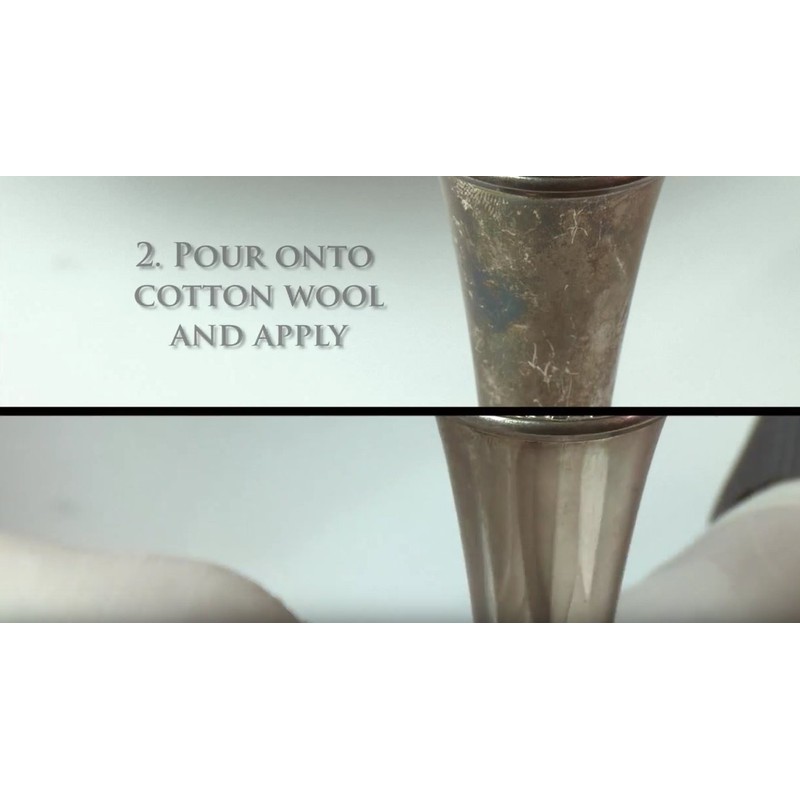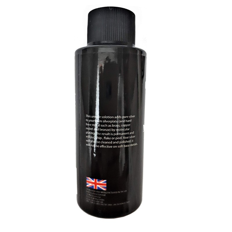 This solution contains pure silver and transforms articles where the silver plating has slightly worn away. This exceptional solution will both clean and deposit a fresh layer of pure silver on plated silverware and base metals such as brass, copper and bronze. Ideal for articles where silver has slightly worn away, plating is at molecular level and the result is permanent, no chips or flakes.