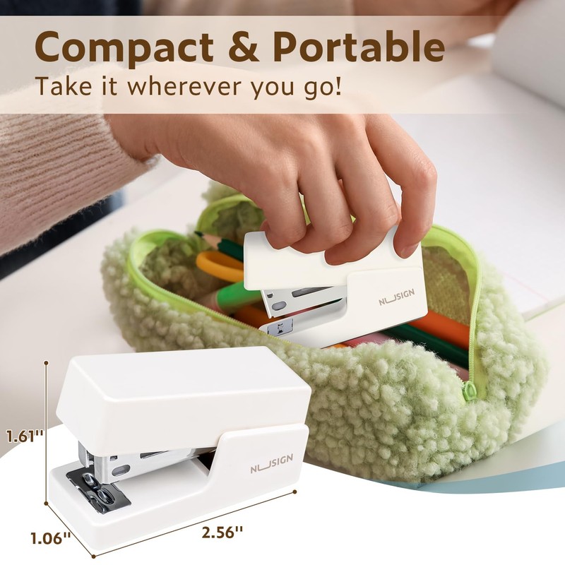 NUSIGN Mini Stapler with 830 Staples, Small Cute Desk Staplers, 25 Sheet Capacity, White