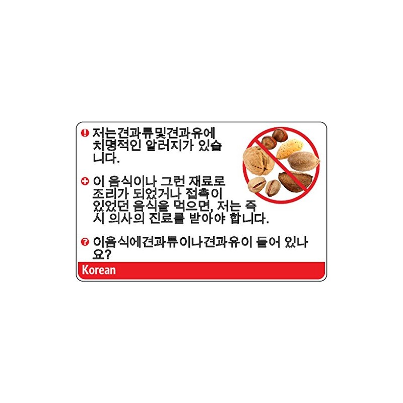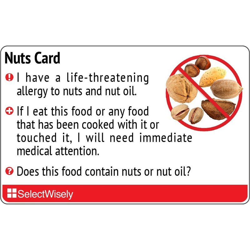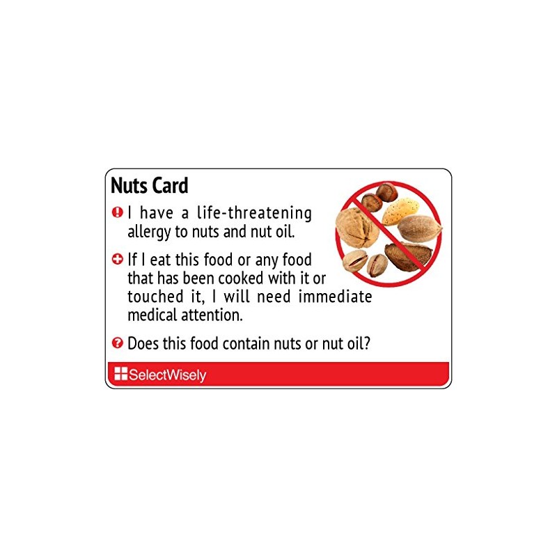 Whether you're traveling to restaurants in foreign language speaking countries or dining locally, you can communicate your nut food allergy needs clearly and effectively by using our carefully translated Nuts allergy card. Our Nut Allergy cards are available in various languages such as Spanish, Italian, French, Thai, Chinese and more.