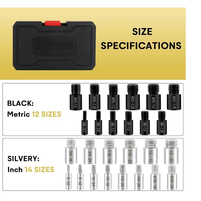 Nut and Bolt Thread Checker, 26 Male/Female Gauges - 14 Inch & 12 Metric, Thread