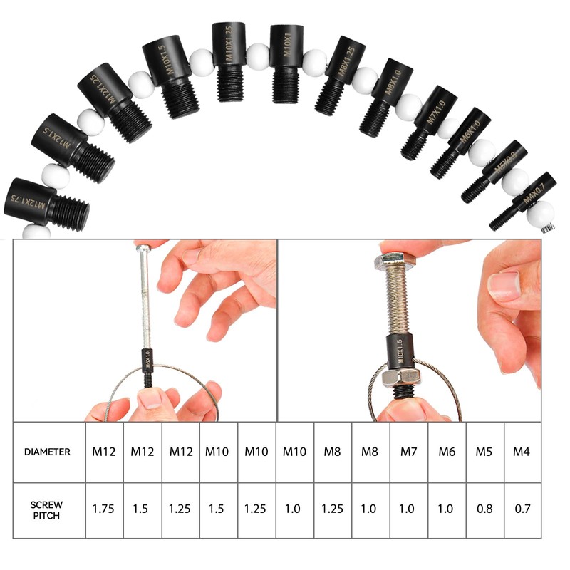 - 【Comprehensive Size Coverage】 The SAE and metric thread gauge Includes 14 inch and 12 metric sizes, catering to the inspection needs of various nuts and bolts. The metric sizes include: M4x0.7、M5x0.8、M6x1.0、M7x1.0、M8x1.0、M8x1.25、M10x1.0、M10x1.25、M10x1.5、M12x1.25、M12x1.5、M12x1.75; the inch sizes include: 6-32、8-32、10-24、10-32、1/4-20、1/4-28、5/16-18、5/16-24、3/8-16、3/8-24、7/16-14、7/16-20、1/2-13、1/2-20. The Fast Size Finder offers versatility across measurement systems.