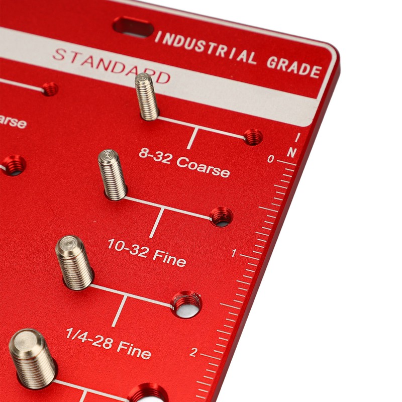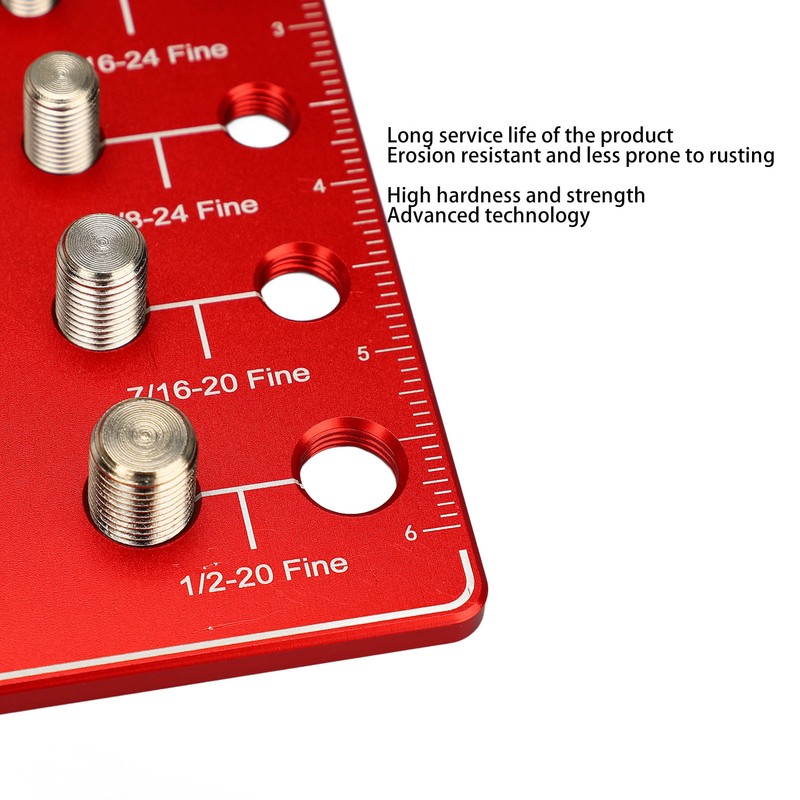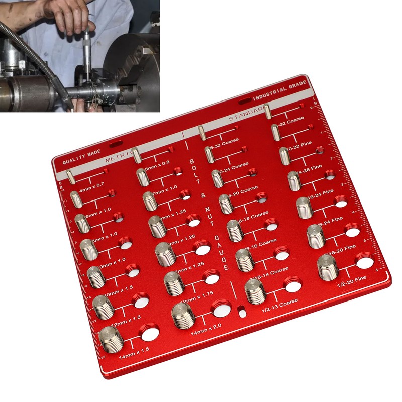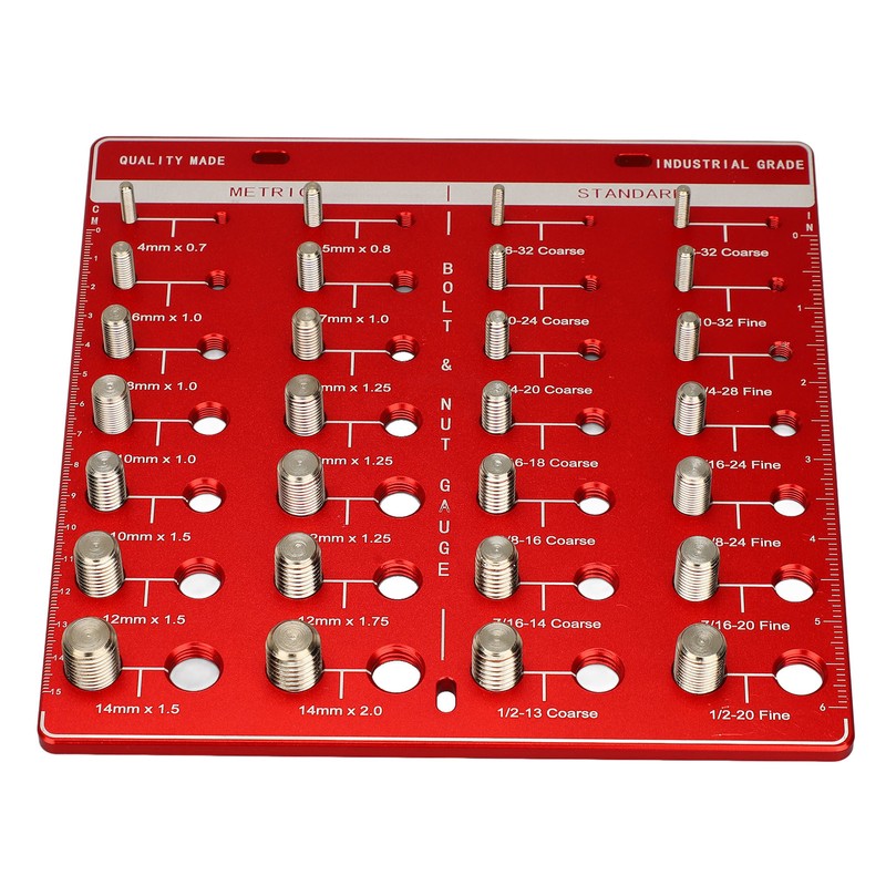 1、Quick Size Identification: 28 hole nut and bolt thread checker with English and centimeter scales allows you to easily identify 28 different sizes of nuts and bolts. 2、Robust Material: Made of 6061 aluminum alloy with hard anodized surface, the thread checker is sturdy and rust resistant, ensuring long lasting durability. 3、Convenient Installation: Equipped with 3 pre drilled mounting holes for easy wall hanging or toolbox attachment, providing easy access when needed. 4、Clear Laser Scales: The bolt and nut gauge features laser etched inch and centimeter scales for quick and easy size comparison, helping you identify sizes accurately. 5、Versatile Tool: Perfect for professional mechanics or enthusiasts, this thread checker board helps you quickly and accurately compare exact sizes without the confusion of coil type identifiers.