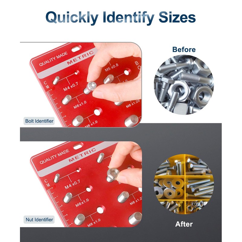 - 【Easy and Quick Access】The Thread checker can lay on bench or hang on the wall, tool chest. Also makes it easy to categorize the right size nut and bolt.