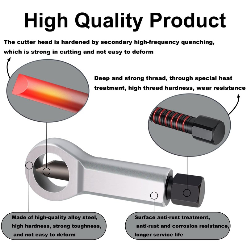 • Easy to Use Simply turn the nut splitter screw to work on the target nut. Very easy to use. You can prepare a wrench to help you with this work. The nut splitter is rust-proof, wear-resistant, general hardening.