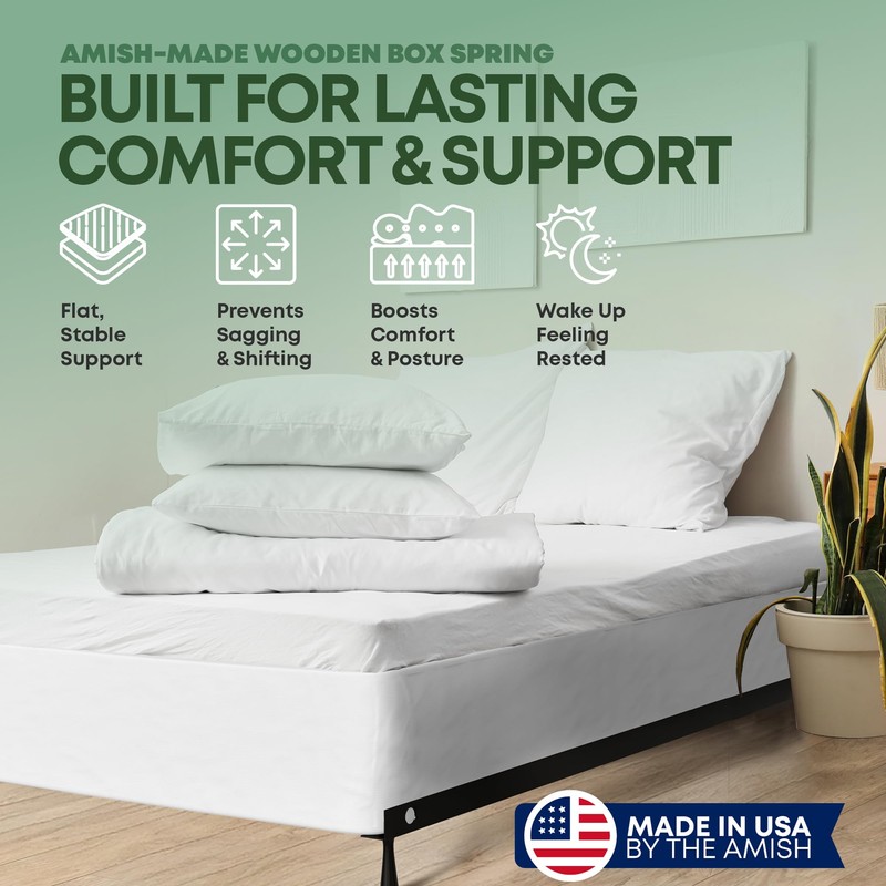 - MADE IN USA BY AMISH CRAFTSMEN – Built by skilled Amish woodworkers using durable solid wood. The wood flexes slightly under pressure, which feels better on your back than a stiff metal frame. Item includes one foundation and all hardware (frame and mattress not included).