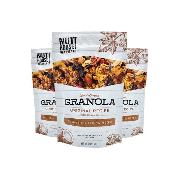 NutHouse! Granola Company - Premium Original Recipe Granola | Certified Gluten-Free, Non-GMO, Kosher | Vegan, Soy-Free | 12 oz. Bag (3-Pack)