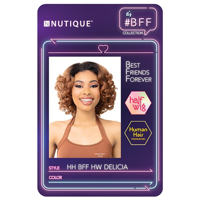 NUTIQUE BFF Curly Bob Human Hair Blend Half Wig HH BFF HW DELICIA (T2/BG)