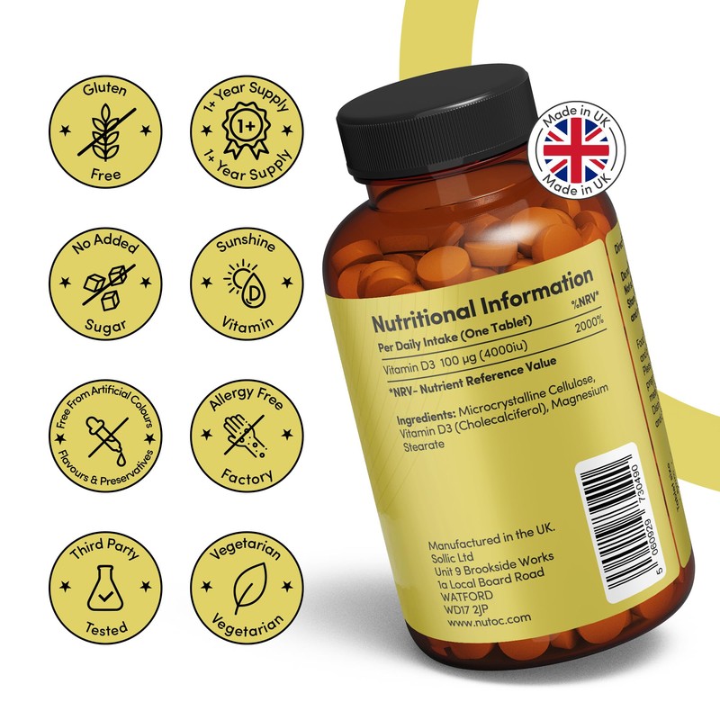 Vitamin D3 | 1 Year Plus Supply by NUTOC| Delivering 4000iu per tablet