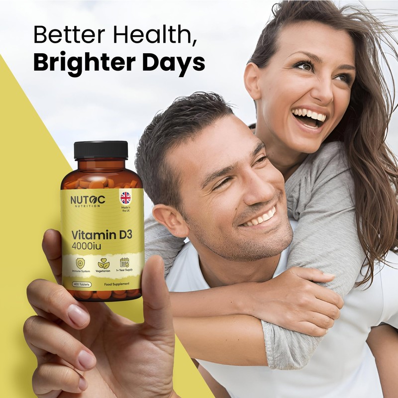 NUTOC Vitamin D3 4000IU Tablets - 400 Micro Tablets, 1+ Year Supply, 6mm Easy Swallow, One A Day, UK Made, Gluten-Free, High Strength - Supports Immune System & Bone Health