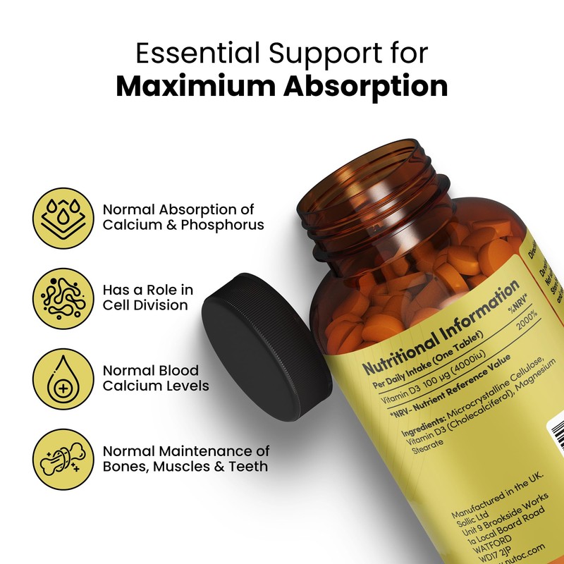 - Easy Daily Supplement Routine – Our tiny 6mm microtablets are easy to swallow, gentle on your stomach, and leave no unpleasant aftertaste—all while delivering 4000 IU of essential Vitamin D3.