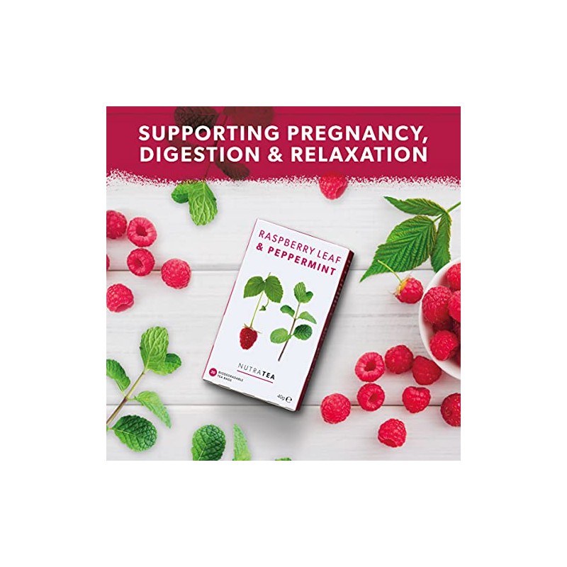 Nutra Tea - Raspberry Leaf & Peppermint Tea - Raspberry Leaf Tea For Pregnancy & Expectant Mothers - 20 Tea Bags - Herbal Tea - (1 Pack)