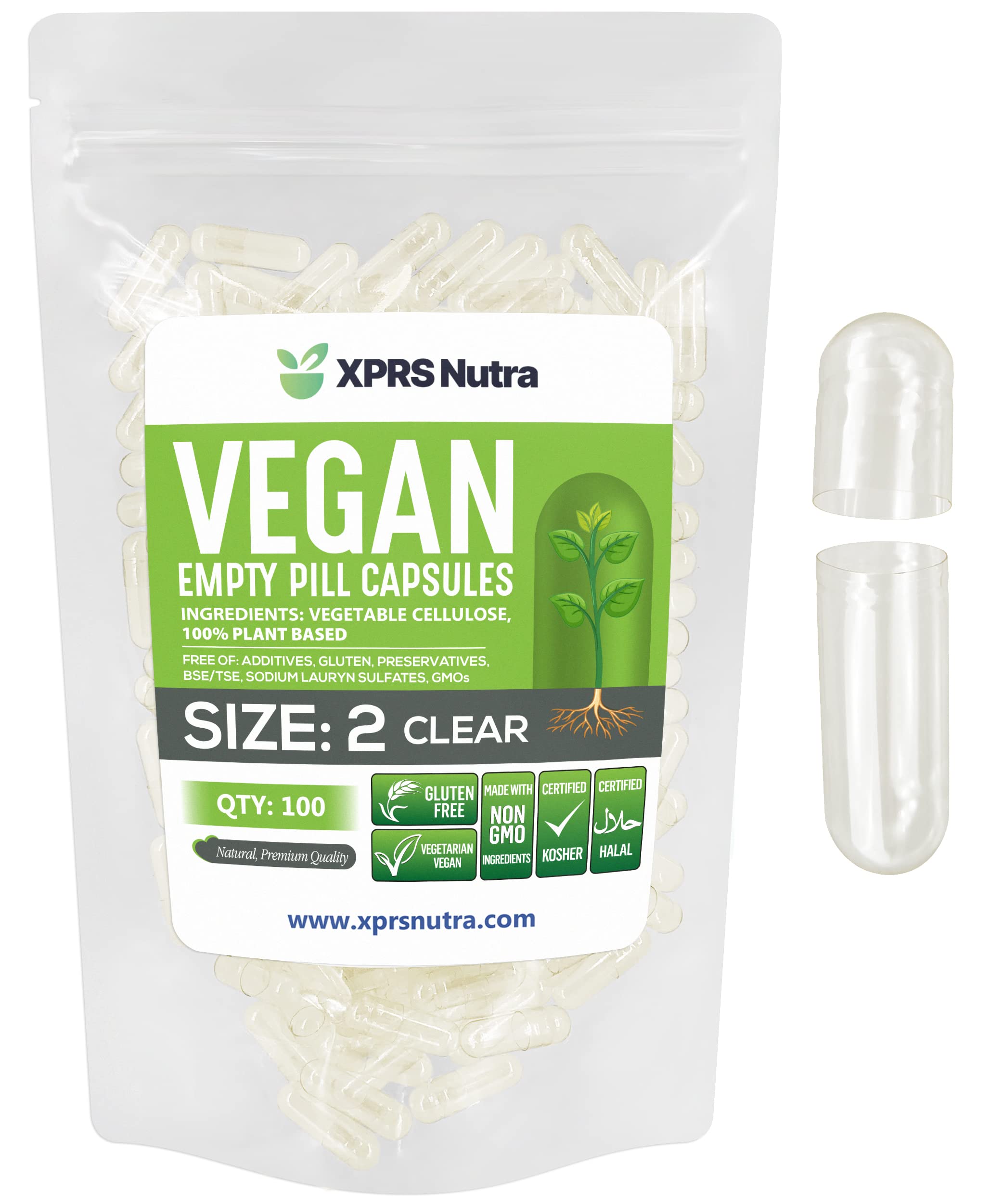 Nutra XPRS Nutra Size 2 Empty Capsules - 100 Clear Empty Vegan Capsules - Vegetaria. 1