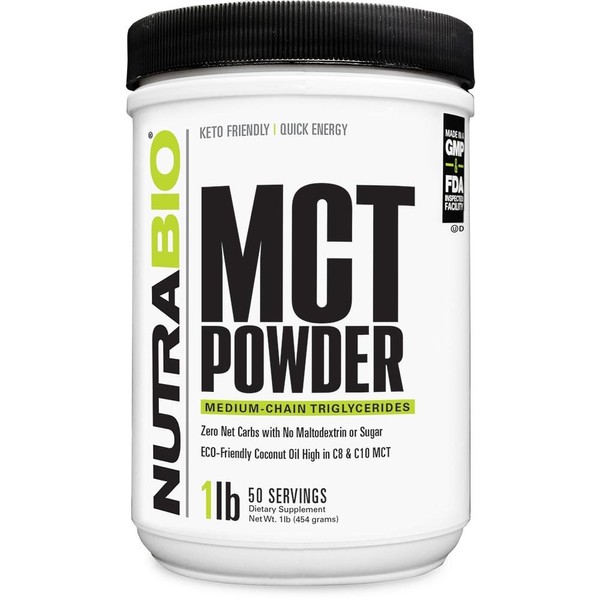 - HEALTHY FATS – NutraBio’s MCT powder provides 3.7g of C8, 1.9g of C10, and 1.1g of other MCTs per serving. This is a great way to supplement your meal replacement shake with a healthy source of fats.