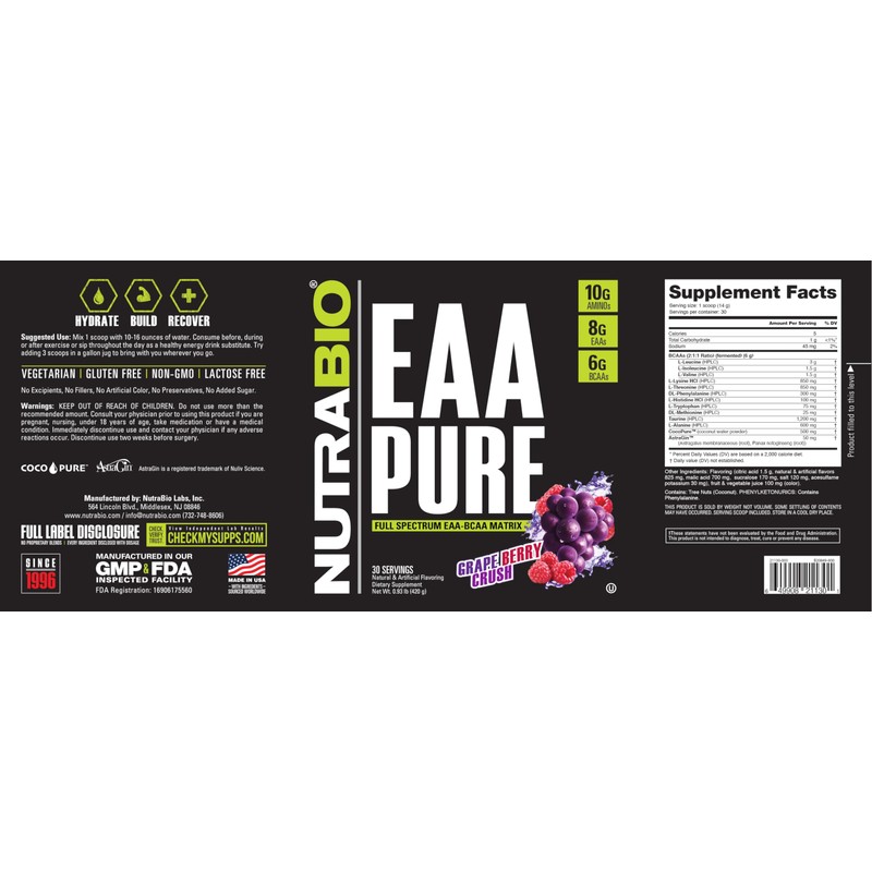 NutraBio NutraBio C EAA Pure C 9 Amino Acids C Muscle Repair and Recovery, 30 Servings, Grape Berry Crush C Pre or Post Workout C All Day Recovery