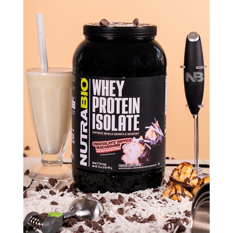 NutraBio NutraBio Whey Protein Powder Isolate Supplement ?C 25g of Protein Per Scoop with Complete Amino Acid Profile - Soy and Gluten Free - Zero Fillers and Non-GMO - Chocolate Dipped Macaroon- 2 Lbs.