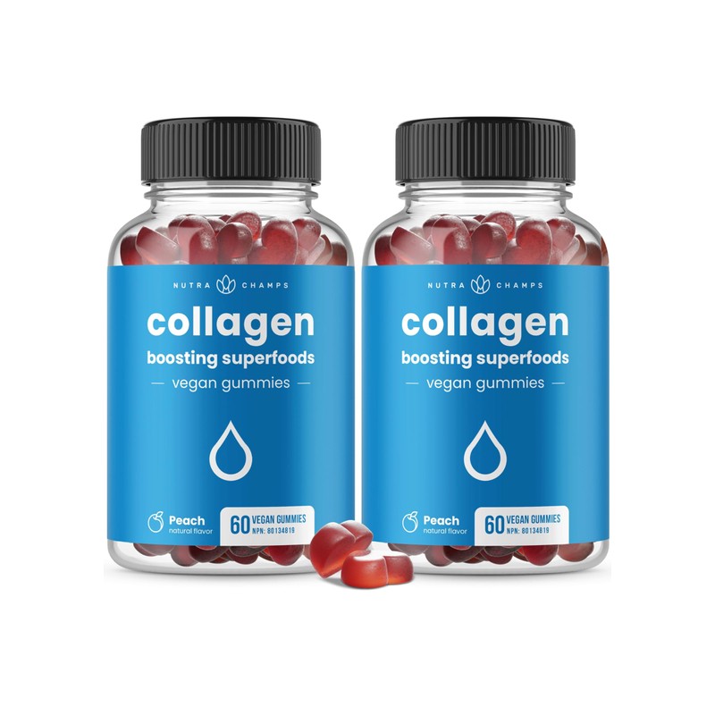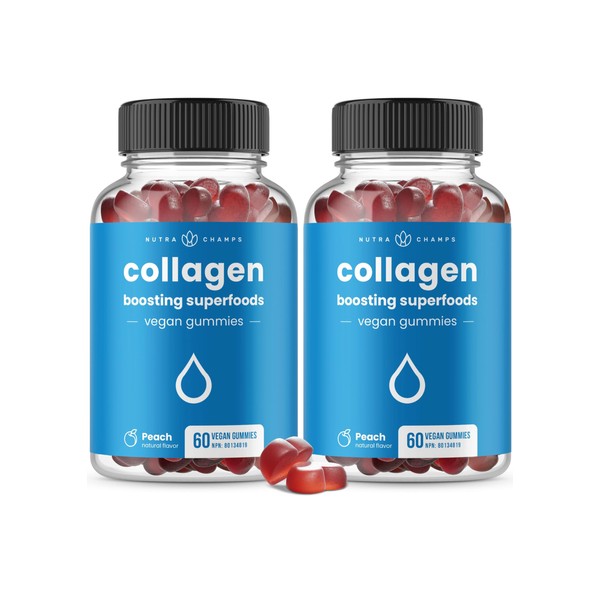 NutraChamps Vegan Collagen Boosting Gummies for Women & Men C Collagen Supplement with Vitamins A, C & E C Delicious Vitamins For Hair, Skin, Nail & Joint Support (2 Pack)