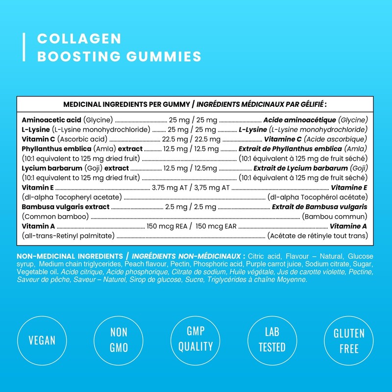 - Boost Collagen Production - Each gummy contains essential vitamins and nutrients to support collagen production! With organic collagen boosting fruits, amino acids and the addition of Vitamin A, C & E, you'll be glowing in no time.