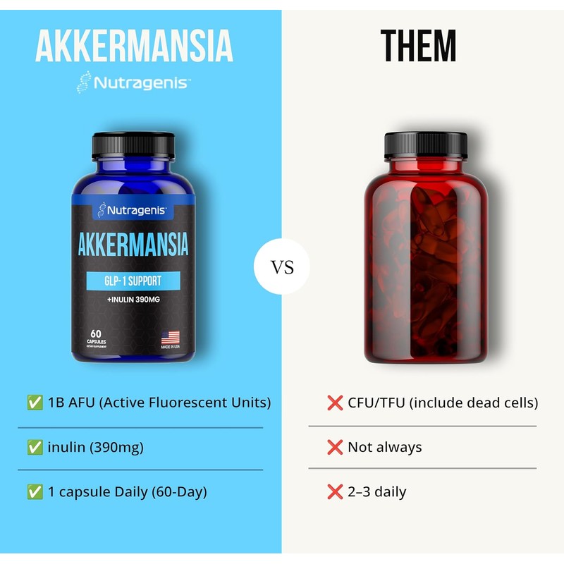 Nutragenis Akkermansia Muciniphila Probiotic – 1 Billion AFU with 390 mg Inulin Prebiotic Fiber – 60 Capsules, 2-Month Supply – Gut Health & Metabolism Support, Daily Probiotic for Men & Women