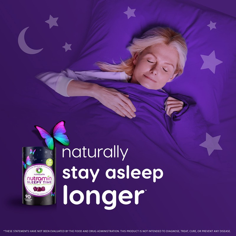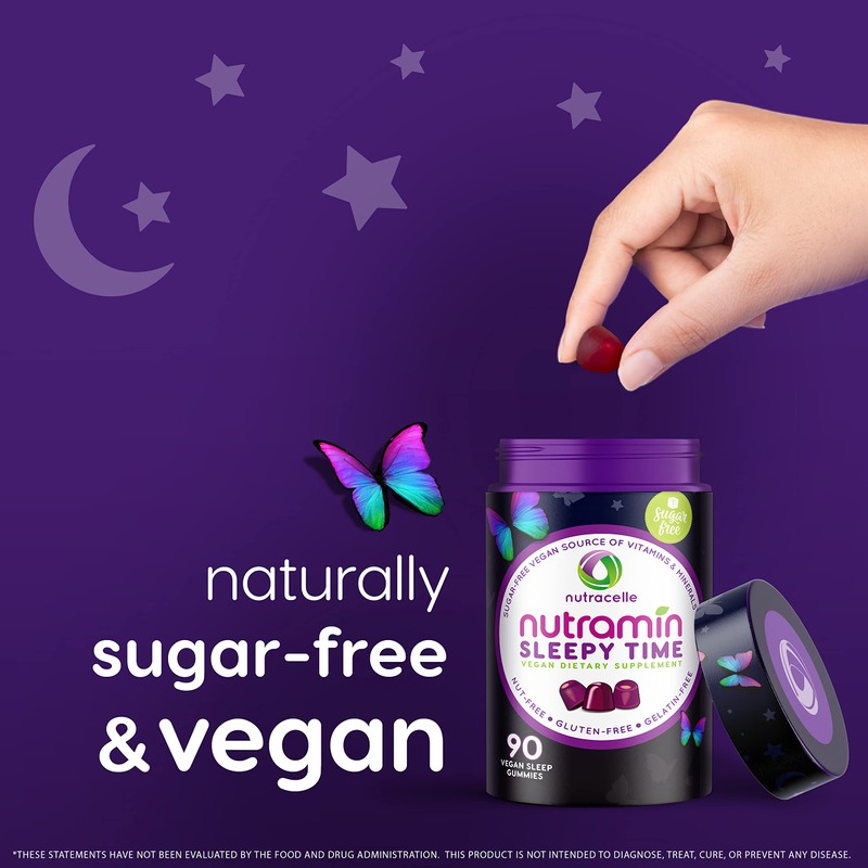 Nutramin Sleepy Time Gummy: The Vegan, Sugar-Free, Natural Melatonin 5mg for Longer Deeper Sleep - No Next-Day Grogginess, Non-Habit Forming Delicious & Drug-Free Allergy-Safe Herbal Sleep Gummies