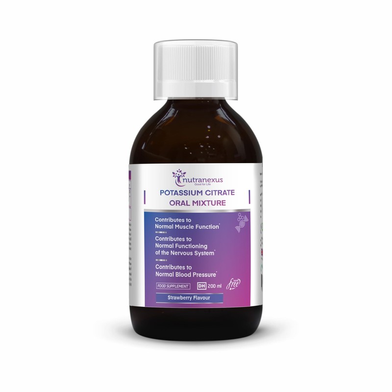 Nutranexus Potassium Citrate Oral Mixture - 200ml | Strawberry Flavor | Contributes to Normal Muscle Function, Nervous Function & Blood Pressure