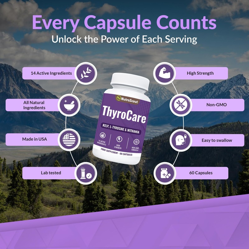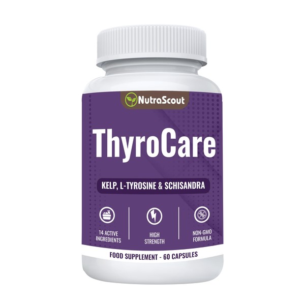 NutraScout ThyroCare #1Thyro & Energy Support Supplement | Advanced Metabolism & Focus Formula with Kelp, Iodine, L-Tyrosine, Ashwaganda, B12, Selenium, Schisandra, Cayenne | 60 Capsules (Non-GMO)