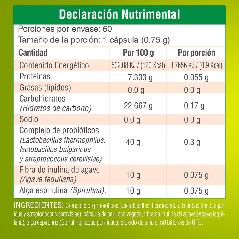 - CARACTERISTICAS: Contiene 3 cepas de Probióticos (50 billones) y Prebióticos para beneficiar la microbiota intestinal, sistema digestivo y sistema inmune. Sin ingredientes de origen animal. Suplemento vegano. 3 botes con 60 cápsulas para 180 días.