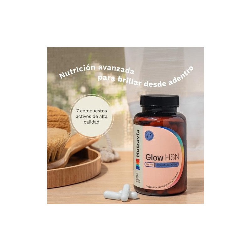 Nutravia Glow HSN 7 en 1 Vitaminas para Mujer y Hombre para Nutrir la Piel y el Cabello Desde Dentro - Colageno Marino, Acido Hialuronico, Vitamina C