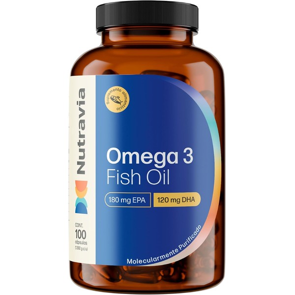 Nutravia Omega 3 Fish Oil 1000 mg Vitaminas para Mujeres y Hombres - Aceite de Pescado de Anchoa Ácidos Grasos Omega-3 180mg EPA y 120mg DHA Suplementos Alimenticios - 100 Cápsulas