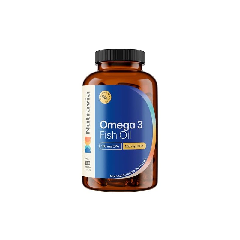 Nutravia Omega 3 Fish Oil 1000 mg Vitaminas para Mujeres y Hombres - Aceite de Pescado de Anchoa Ácidos Grasos Omega-3 180mg EPA y 120mg DHA Suplementos Alimenticios - 100 Cápsulas