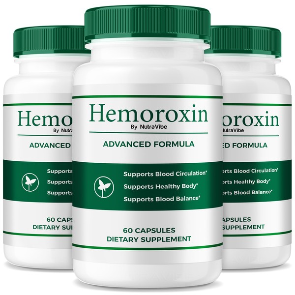 NutraVibe (3 Pack) Hemoroxin – Natural Circulation & Comfort Support Formula for Healthy Circulatory Function, Balance & Everyday Relief | Gentle and Plant-Based, Easy-to-Take Pills (180 Capsules)